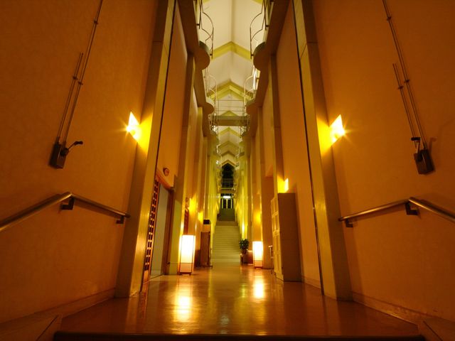特徴ある建物です 棚田をイメージし周囲の緑に溶け込むようなアースカラーが特徴です