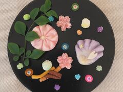 黒い丸皿に作った和菓子を金平糖やあられなどで飾り付けをします。センスを試されますがやっていくうちに楽しくなり、歪な和菓子も様になっていきます。