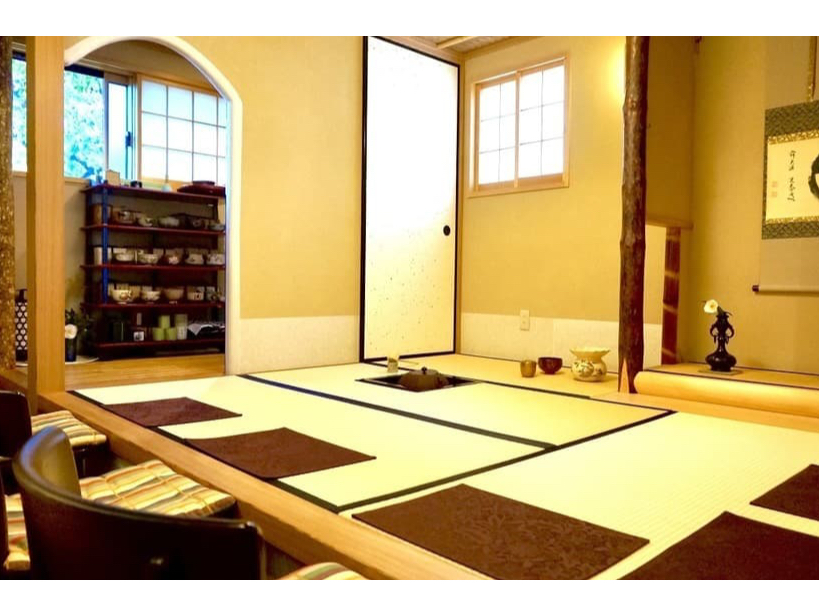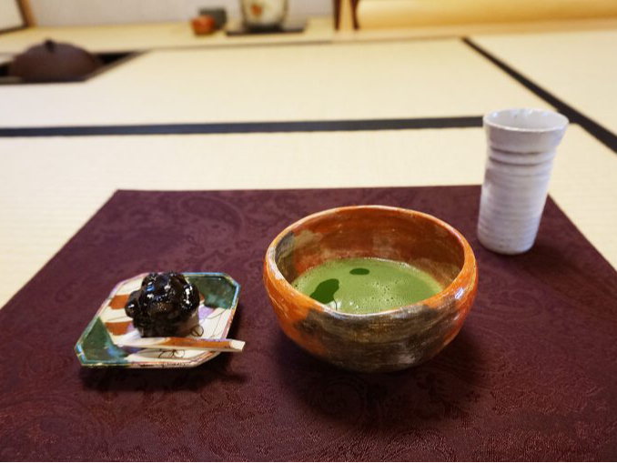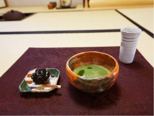 体験後、特別な茶室の空間でお好きな骨董茶碗で点てたお抹茶と味わっていただけます。