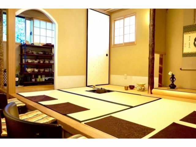 お点前を見るには予約と別料金が必要です。2階半分にはカフェも有り、珈琲・紅茶、軽食も召し上れます。
