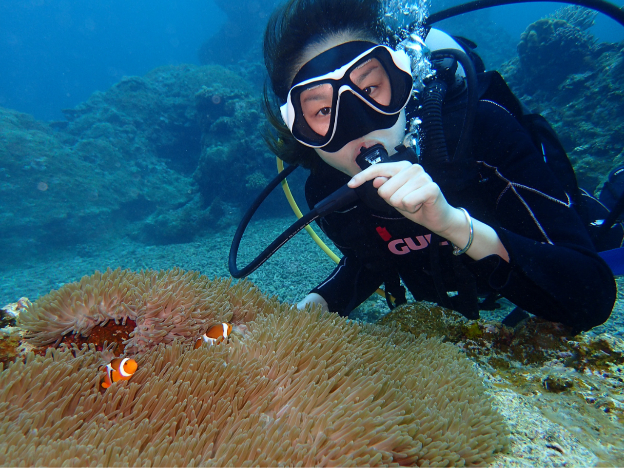 1人のガイドにゲスト様は最大4名様の少人数グループで経験豊富なガイドが一緒に潜るので安心&満足感いっぱい!川平の海を満喫しましょう!お一人様のご予約も大歓迎です♪
