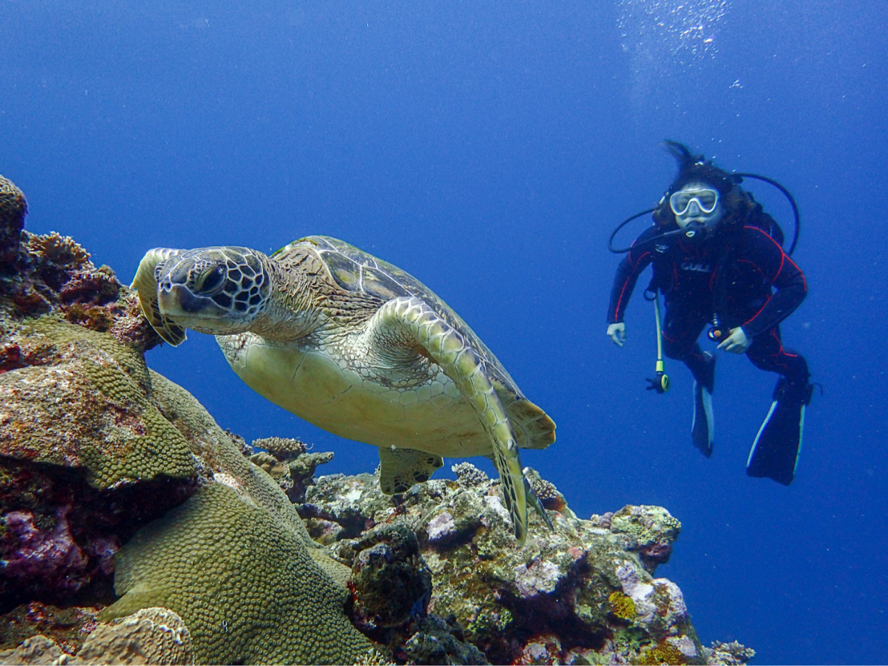 川平エリアにあるお店なので主に潜るのは川平周辺のポイント。各ポイントまで約15分程なので1日中船に揺られることなく船酔いの心配も少なく楽しんでいただけます。シーズン中はマンタポイントまでほぼ毎日お出かけしてますのでマンタに会える可能性が高いのも魅力♪