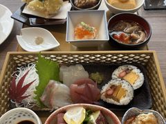 乳児を連れてのランチです。壁際の落ち着く席に案内してもらえ、ゆっくりと飲食できました。お造りも蕎麦も含め全部が満足いく膳でした。いくらが苦手でしたが、小鉢に添えてあったものは食べられそうな気がして口に入れると、すんなりと、苦手克服のきっかけになったかなと喜んでいます。上品なランチ、また利用する予定です。設備面のことですがトイレのおむつ交換台は、通路に置かれた小さな簡易的なもので生後半年以上の児だと転落する危なさがあるサイズです。トイレ個室内にはベビーチェアはなく多目的トイレに設置してありました。授乳室はありません。