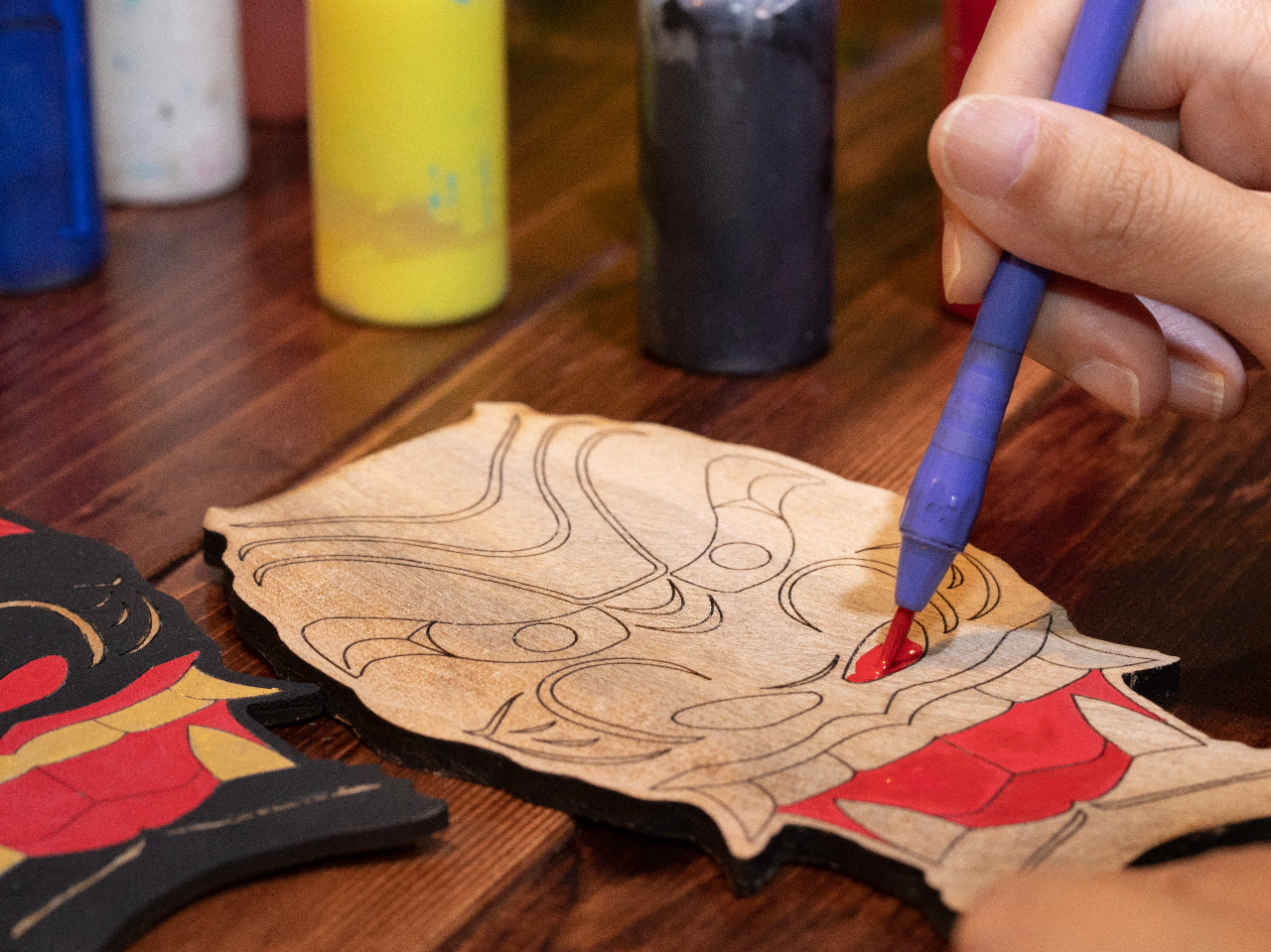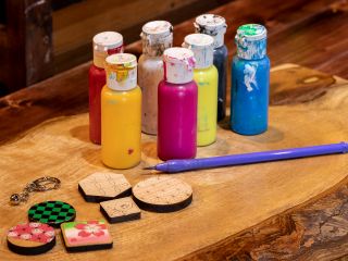 木材に色塗りをして、オリジナルのキーホルダーを作ることが出来るプランです