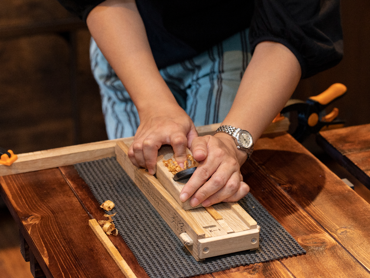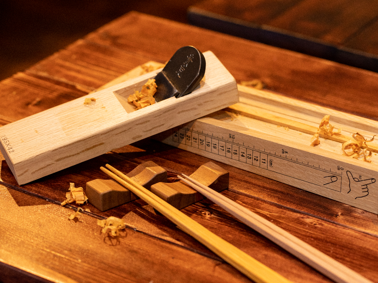 木をカンナで削り、自分だけのオリジナル箸づくりを体験できるプランです