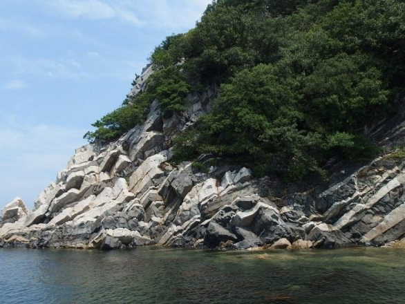 「絹島の桂状節理」という代表的な3種の異なった地層があります。