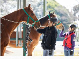 全くの初めての方を対象に馬に触れるところから、馬に乗って発進・停止の合図や誘導、少し走るところまで気軽に体験できるコースです。