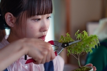 会場に用意されている季節に応じた2〜3種類の苗と鉢の中から、ご自身のイメージにあうものを選び、世界に一つのオリジナルな完成物をお持ち帰りいただきます。この体験は、純粋に『楽しい!』ほかに、盆栽苗の成長/根の張りに合わせて、ご自身で鉢の植え替えをするときにも役立ちます。