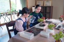 盆栽苗や鉢といった元々は別のものを、ご自身の想いをこめて、一つの作品を仕上げることで、日ごろの忙しさや喧噪から離れて、緩やな創作体験をします。