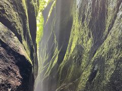 秘境・由布川峡谷は幅2メートルにまで狭まります