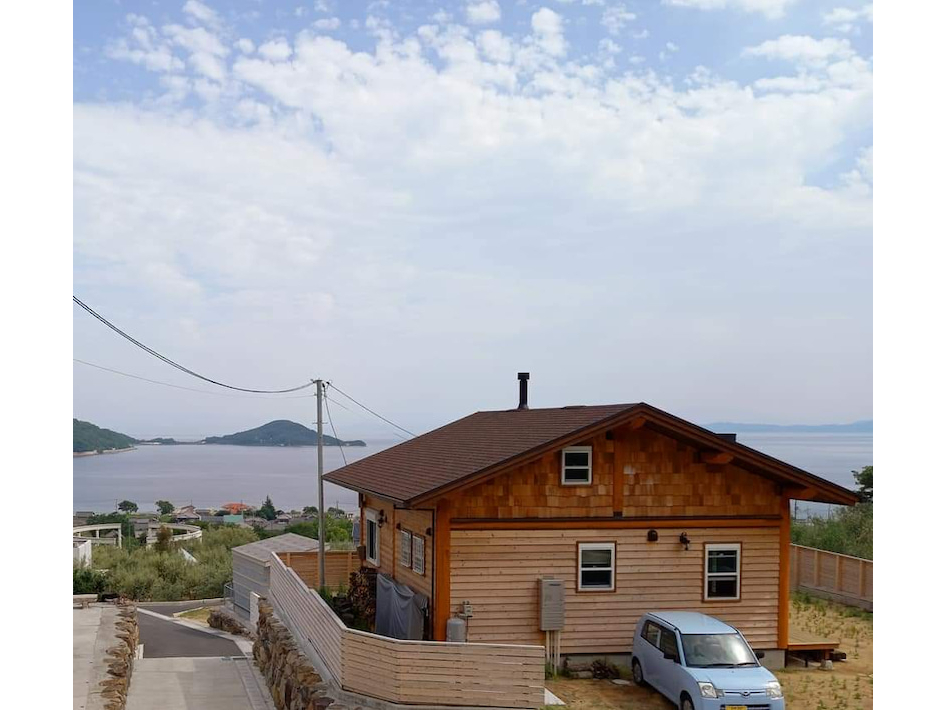 海とオリーブ公園を臨むログハウスのKJ工房