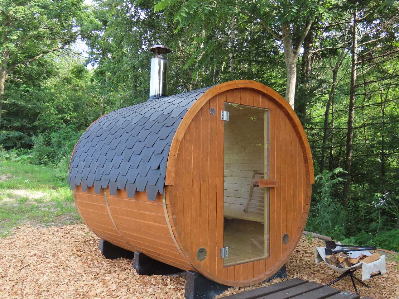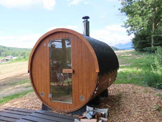 バレルサウナ「MONONOFU」で、本格的なサウナを楽しむことができます。