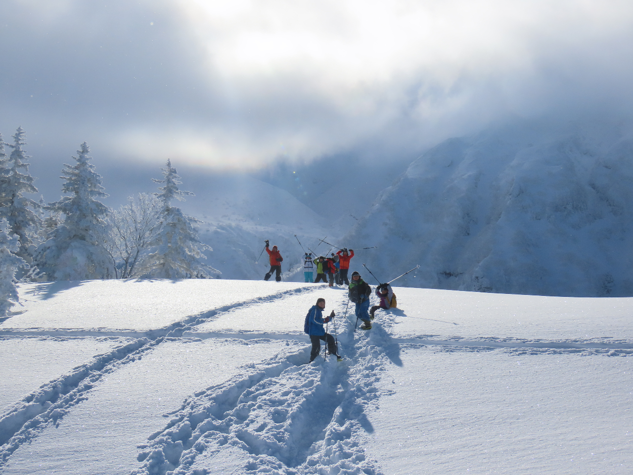 標高1300mエリアのダイナミックな地形を天候や参加者の体力に合わせてご案内します。スノーシュー・スノートレッキング