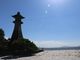 宍道湖の東岸、宍道湖大橋の南にあり、県道37号線に沿って南北に細長い公園です。私たちは昼間に訪ねましたが、宍道湖の夕景を楽しめる場所です。また、公園内には「松高の庭」の碑、幕末に松江藩を救ったという「玄丹かよ」の像、料亭青柳楼にあったものを移築したという大灯籠などがあり、見逃せません。できれば夕方にゆっくり散策したい公園です。