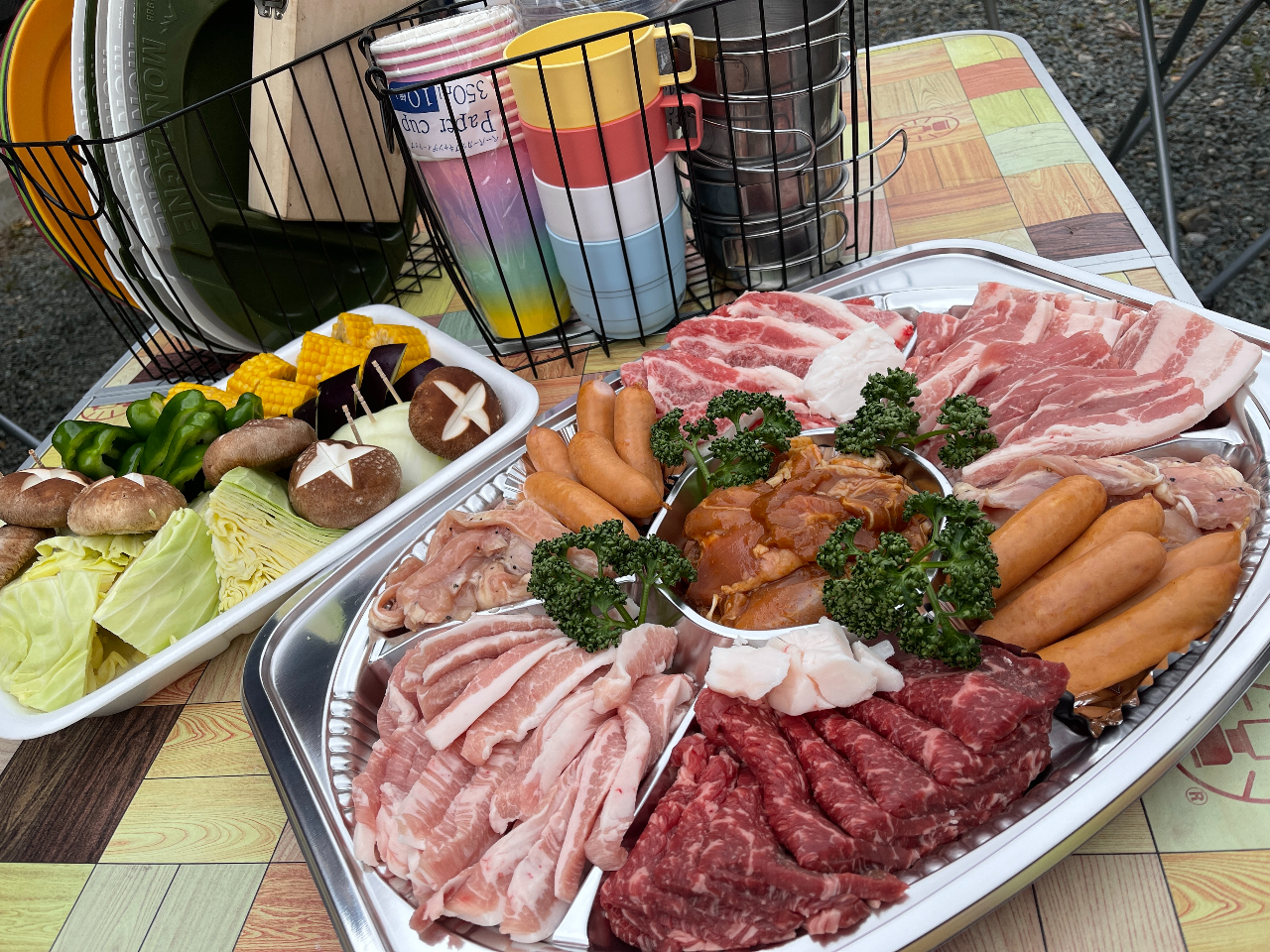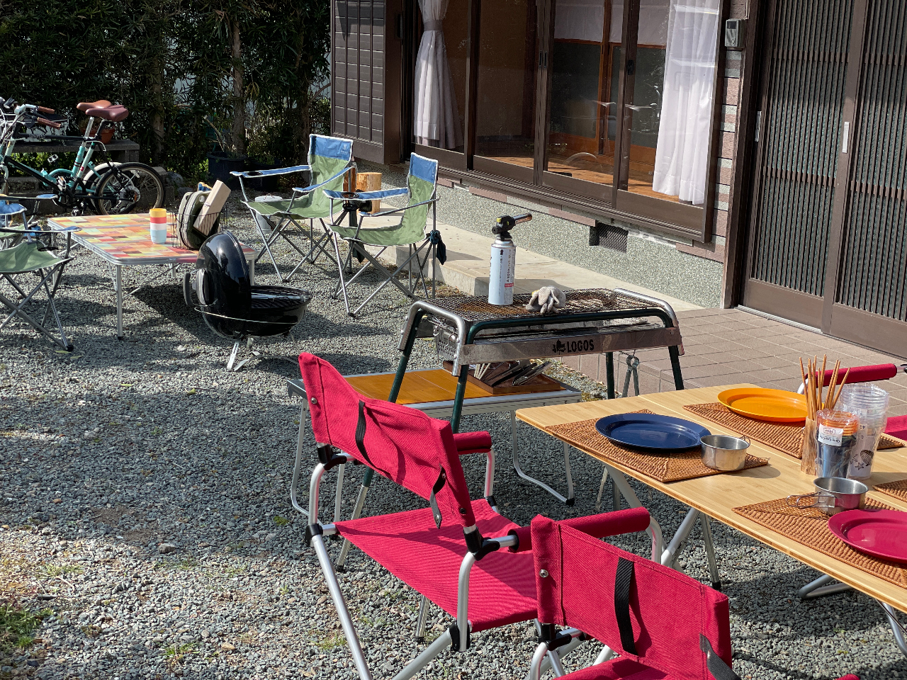 BBQセット(BBQグリル、炭、お皿、箸、コップ、トング)、BBQ食材、レンタサイクル、和室(2部屋)利用料金(冷暖房完備、冷蔵庫有り、wifiあり)