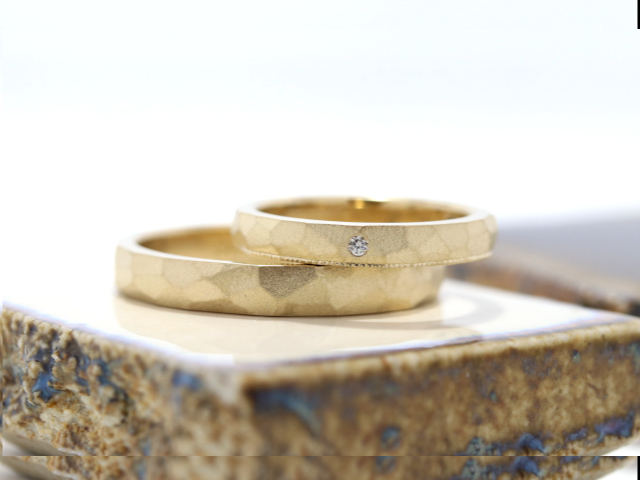 【兵庫・神戸・手作りリング 10Kプレミアムペアリングコース】高級感と強度を兼ね備えたペアリング。10K(2mm幅1本)& 10K(1.5mm幅1本)