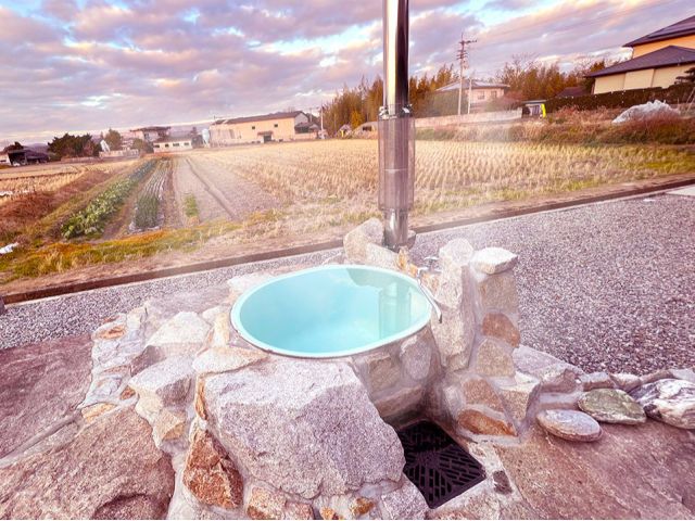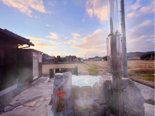 ・約70年つづく農家の庭できた露天式のお風呂です(2019年完成)。「かつての農家の生活」を体験することで、人々の営みについての興味も湧いてきます。