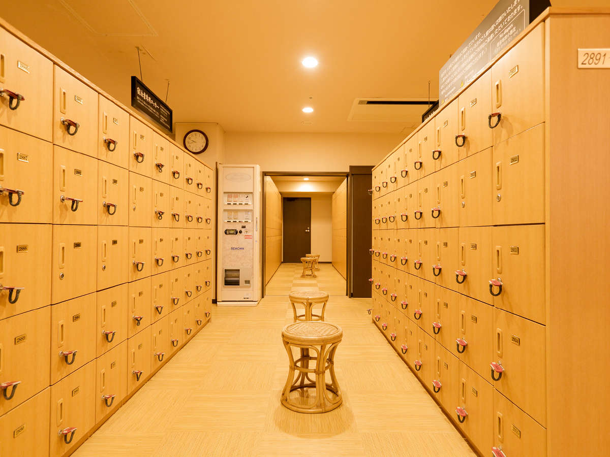 個々に仕切られたスペースで、ゆったりとご利用いただけるパウダールーム。脱衣所には鍵付きのロッカー(無料)をご用意。 安心してご入浴いただけます。