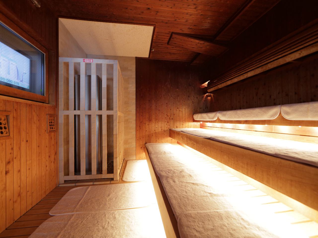 高温の乾燥した熱気によって発汗を促すドライサウナ。 【高温サウナの設定温度】 男湯・・・88℃前後/女湯・・・85℃前後