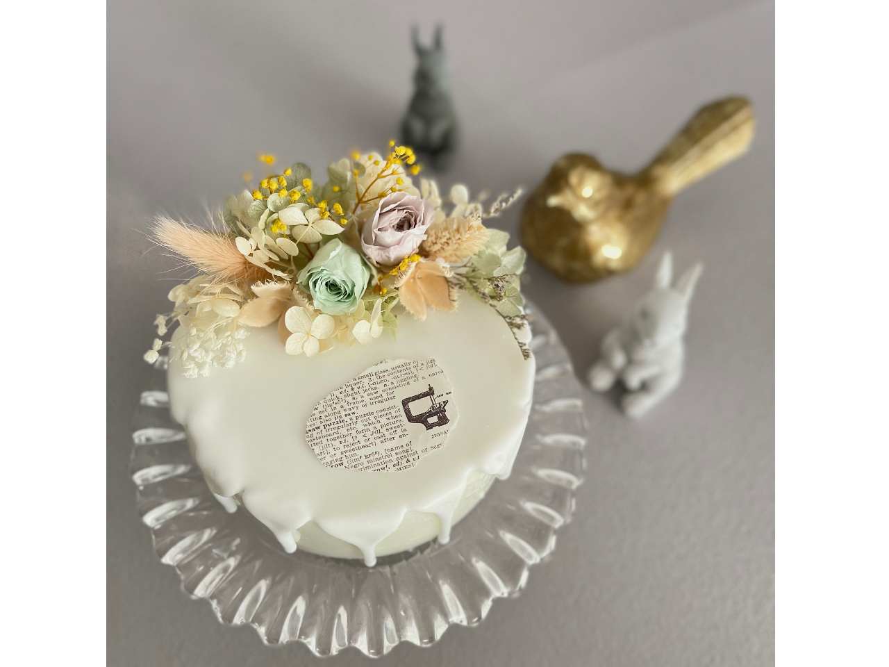 【世界遺産登録上賀茂神社近く】たらりんクリームが可愛いアロマワックスドリップケーキキャンドル〜ホールケーキ4号サイズ〜ドライフラワーやプリザーブドフラワーで可愛くデコレーション