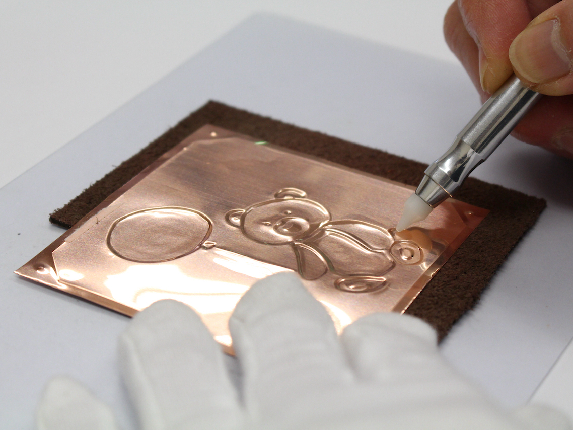 ・銅が光に反射するため、図案が見えにくくなります。手の力を使う、細やかな作業です。手に力が入らない方、小学生以下のお子さまは、大人の方とご一緒にご参加ください。