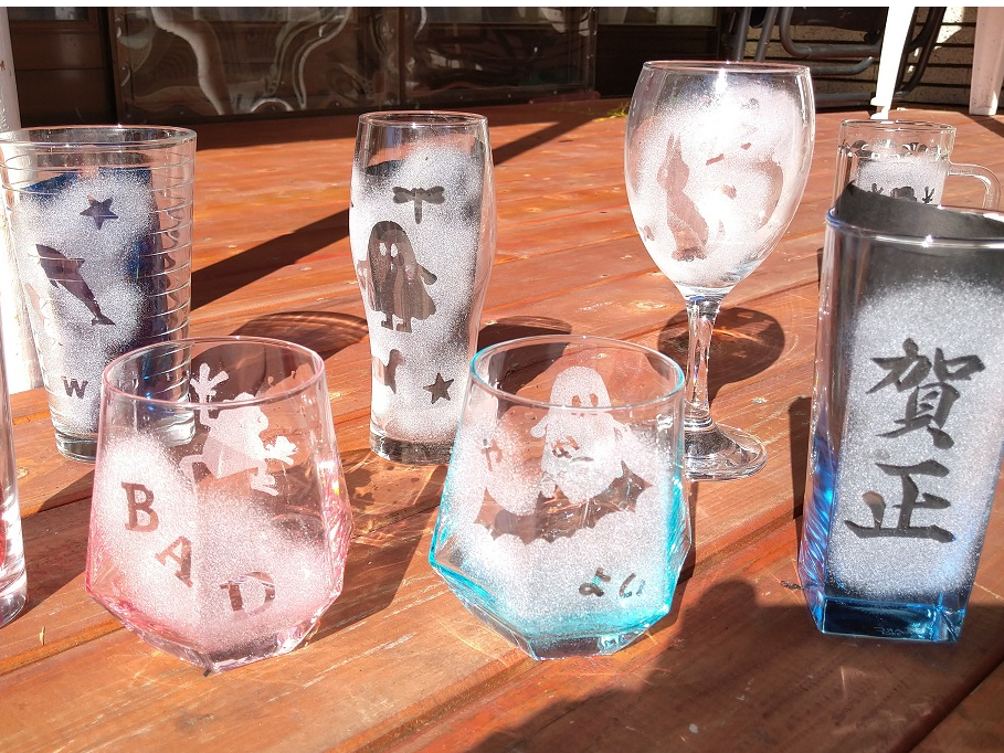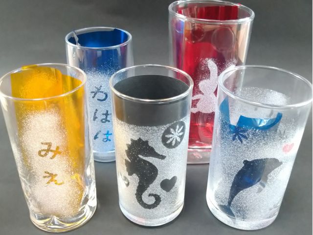 サンドブラスト制法で、オリジナルグラスを作る体験です。
