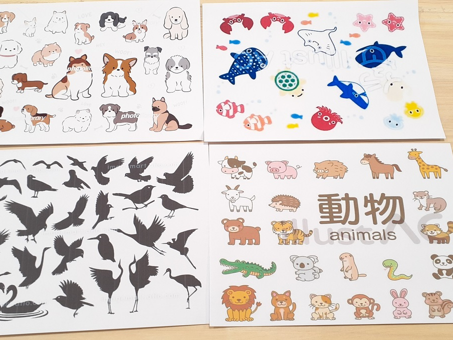 こんなシールを器に貼ってもOKです。はさみで切ったりもします。1からテープを切ったり貼ったりしてもいいですよ。