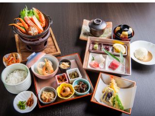 毛蟹の姿盛りや北海道産牛ロースの陶板焼きが楽しめるディナー会席