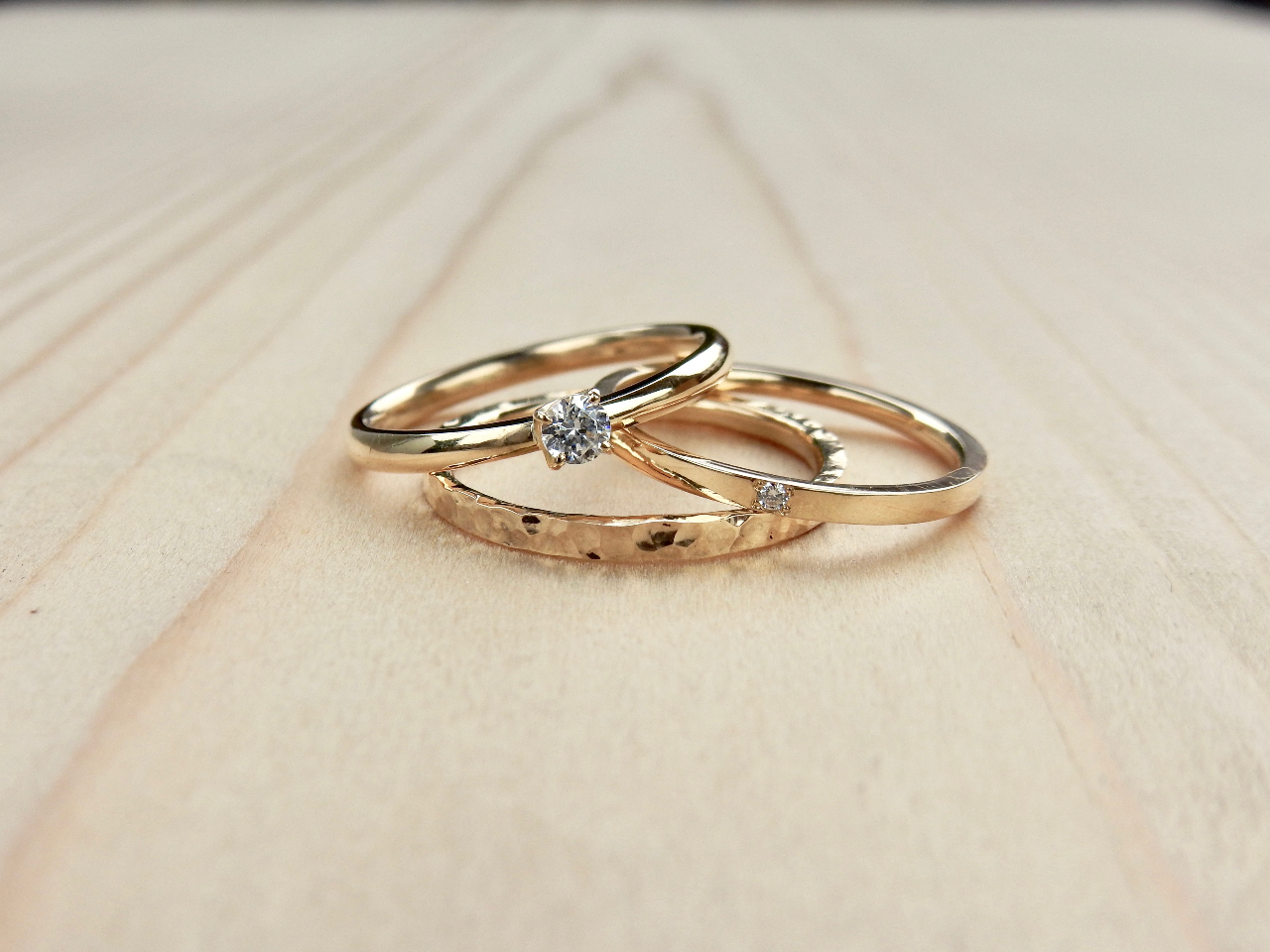 叩いて丸めて溶接して、お二人の手で結婚指輪・婚約指輪を作るコースです。未経験でも苦手でも大丈夫。材料となるのは1本の金属棒です。徐々に形を変えて指輪になっていく、モノづくりの楽しさも体験できます。