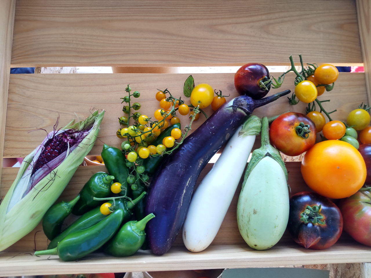 夏野菜 花、イタリアトマトです。 冬は、里芋や大根など根菜になります。