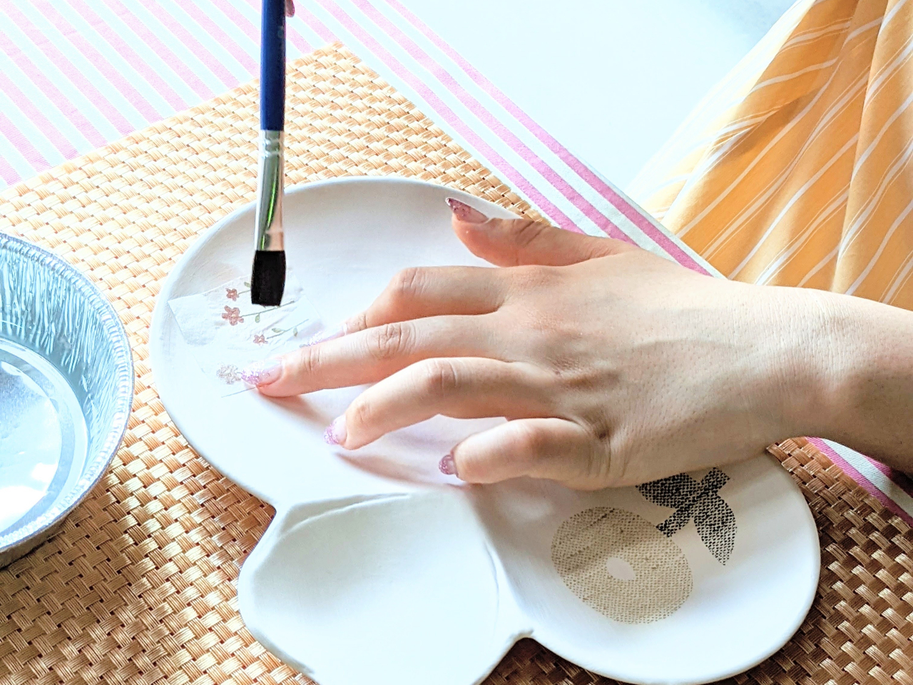 絵付けはこのように和紙を陶器に貼っていきます♪