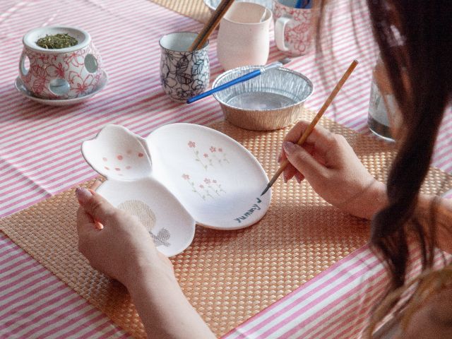 係員がやり方を説明致しますのでご安心下さい、楽しく絵付け体験ができますよ〜