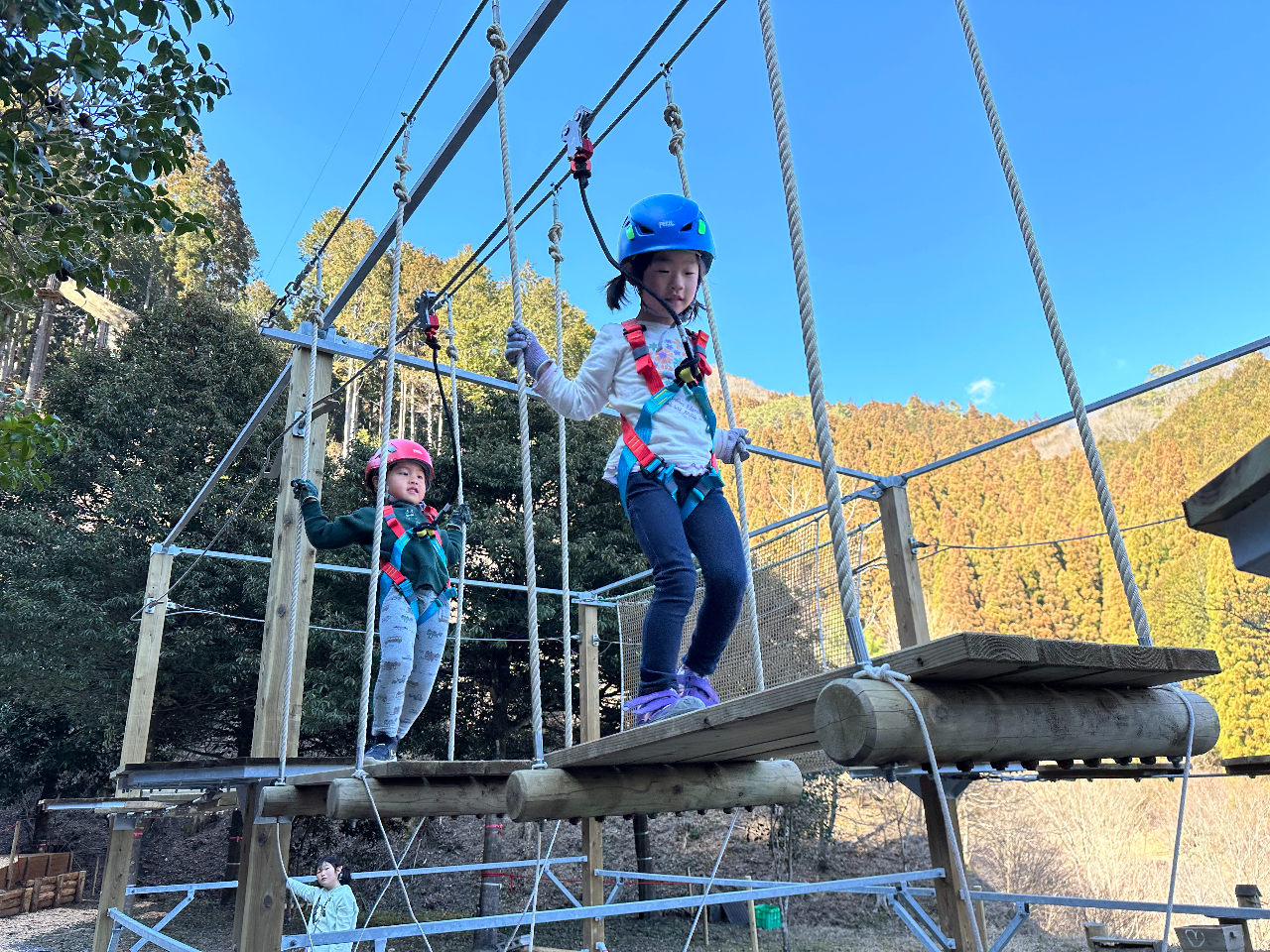 設置されているコースでは、専用のハーネスを着用して地上約2mの高さでバランスをとりながら一本橋や揺れる板を渡ったり、ネットをかき分けて進んでいくような様々なアクティビティを体験できます。