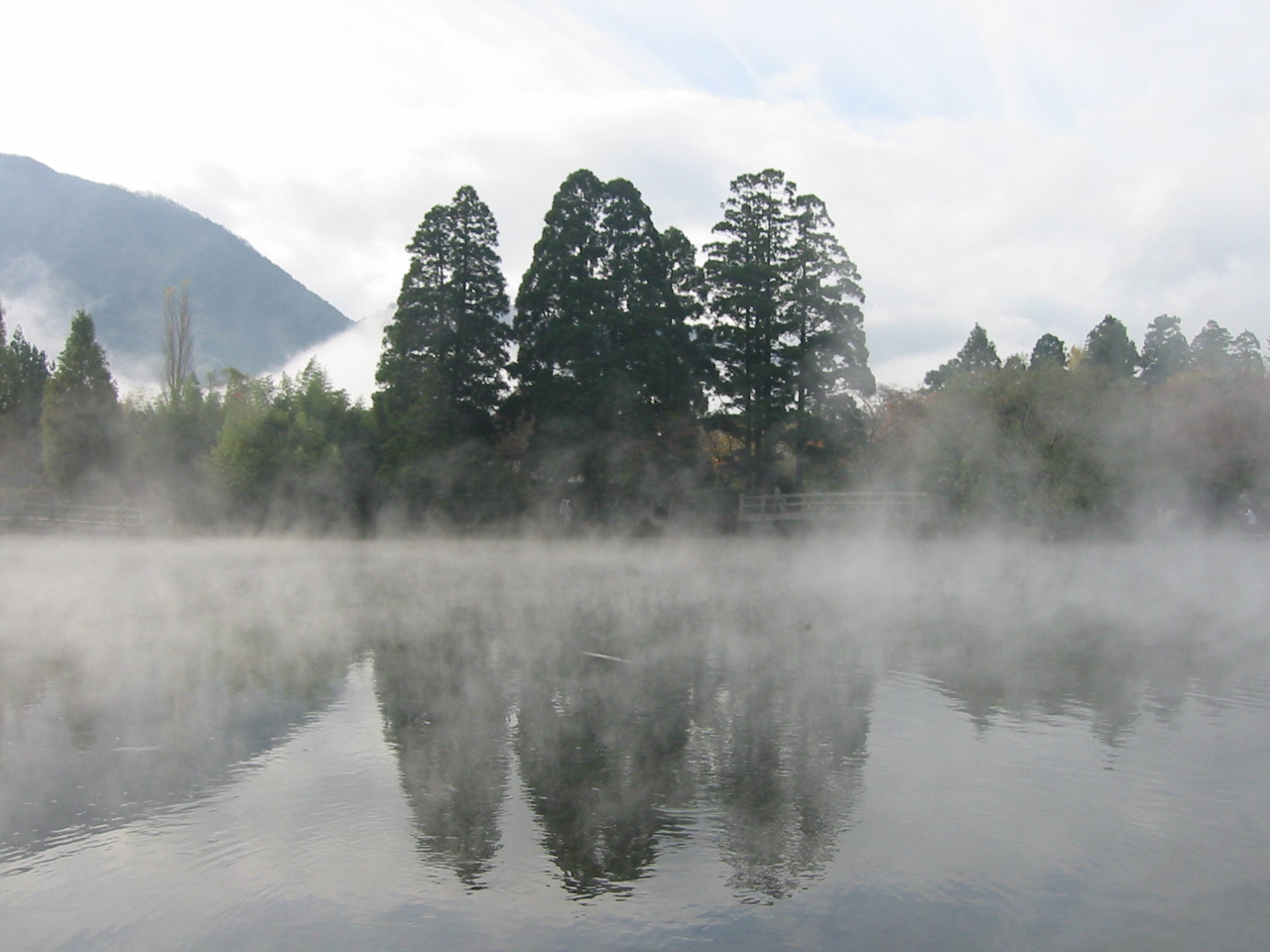 朝霧漂う金鱗湖