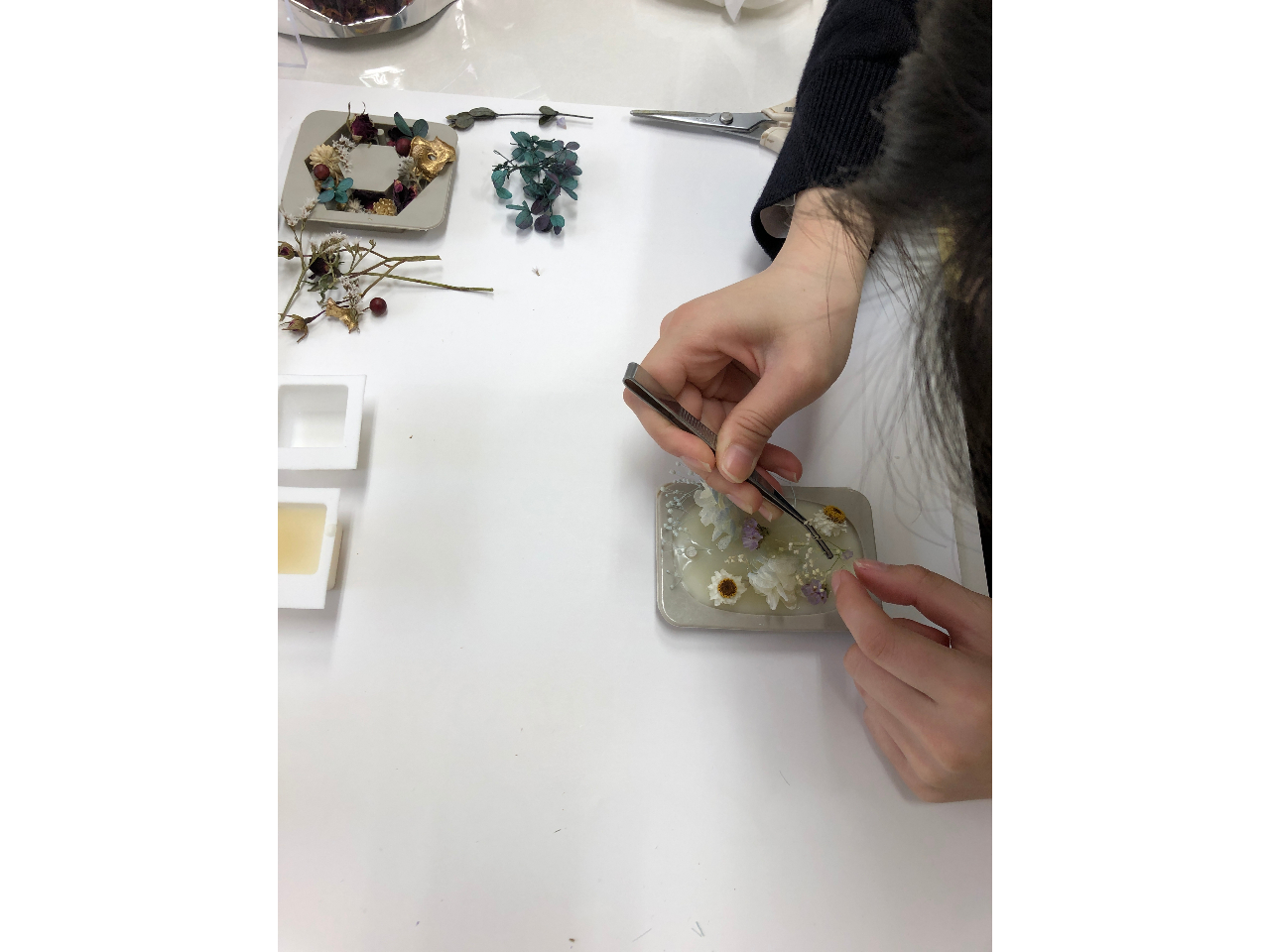 お花や香りを選んで1人2個作っていただきます。