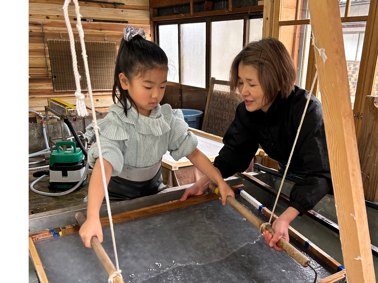 越前和紙の産地では“ここだけ”金型落水紙体験紙漉き