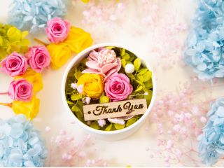 *:._かわいい!おしゃれ!プリザーブドフラワーのサークルボックスアレンジ体験レッスン_.:*女性・ファミリーにおすすめ★