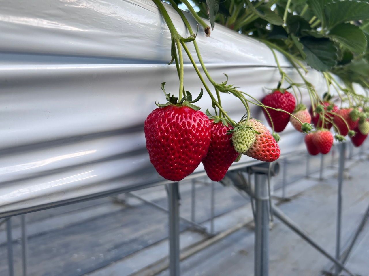 タニカワ農園では高設栽培で育てられた章姫のいちご狩りが楽しめます!