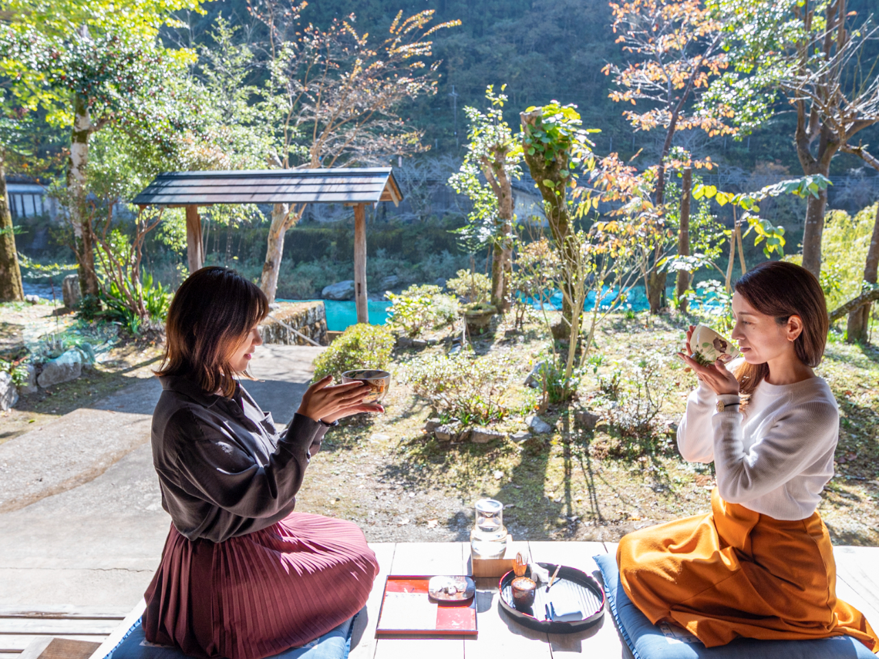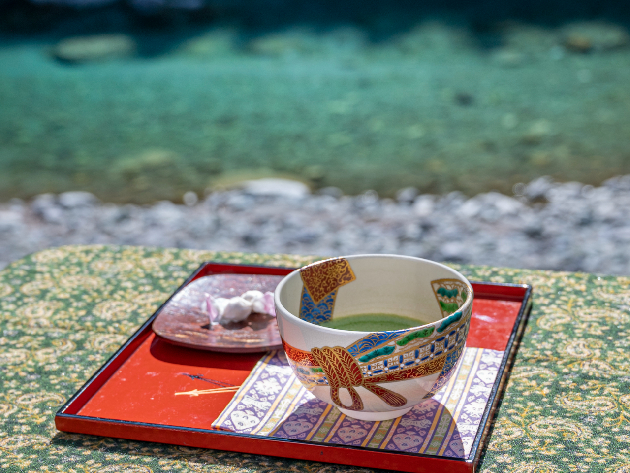 お寺から仁淀川を眺めながら「抹茶」を体験、美味しいお抹茶をお召し上がりいただけます!五感を研ぎ澄まし、心と体を整えます茶道教室・茶道体験
