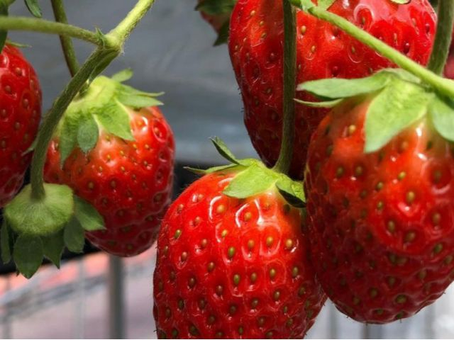 台の上で栽培されているので、腰をかがまなくてもいちごを確認して取ることができます。