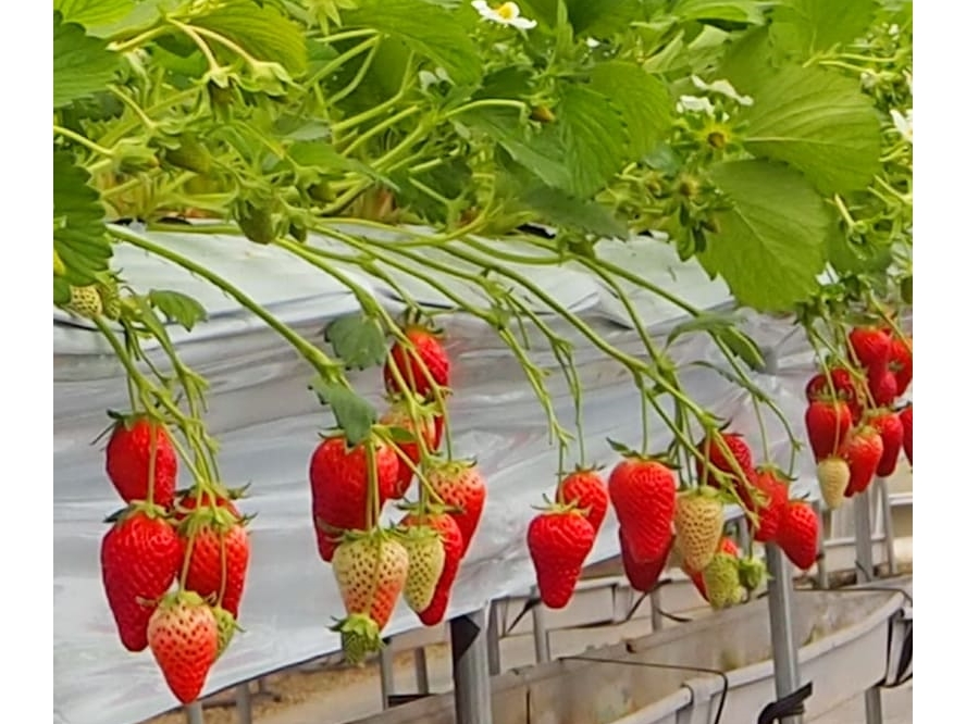 高設栽培でかがまず楽にいちご狩りが楽しめます♪