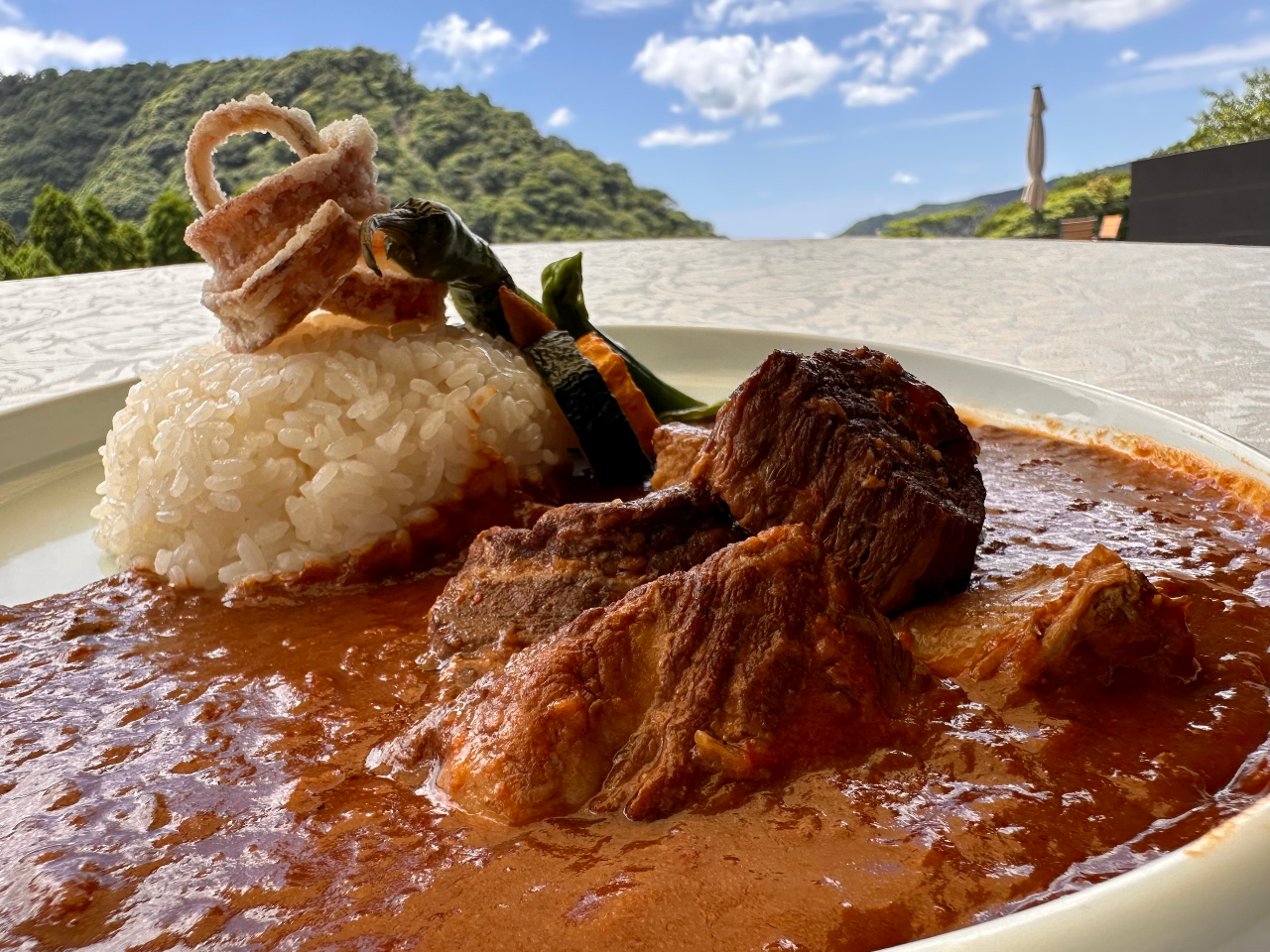 あか牛カレーがメインのランチセットが付属しております。貸切温泉・貸切露天・貸切風呂