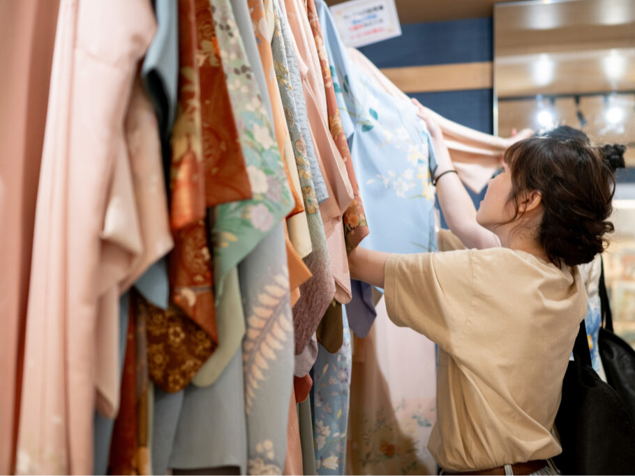 女性は、300点以上の小紋・レース着物・浴衣・訪問着・振袖プランから