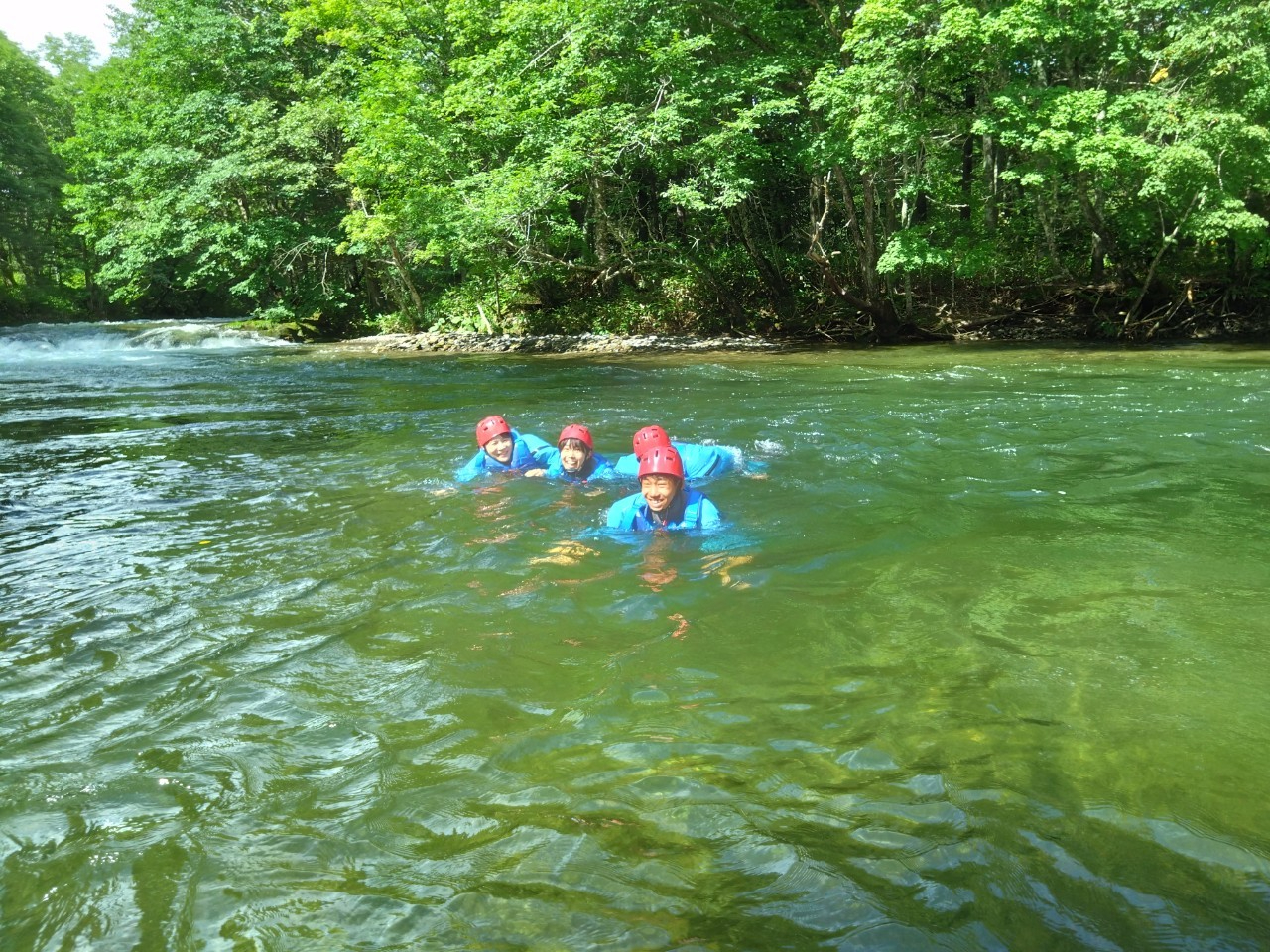 通常のラフティングと同じ川ですが、穏やかな区間を、水遊びしながら大自然の中をゆったり下ります。ラフティング