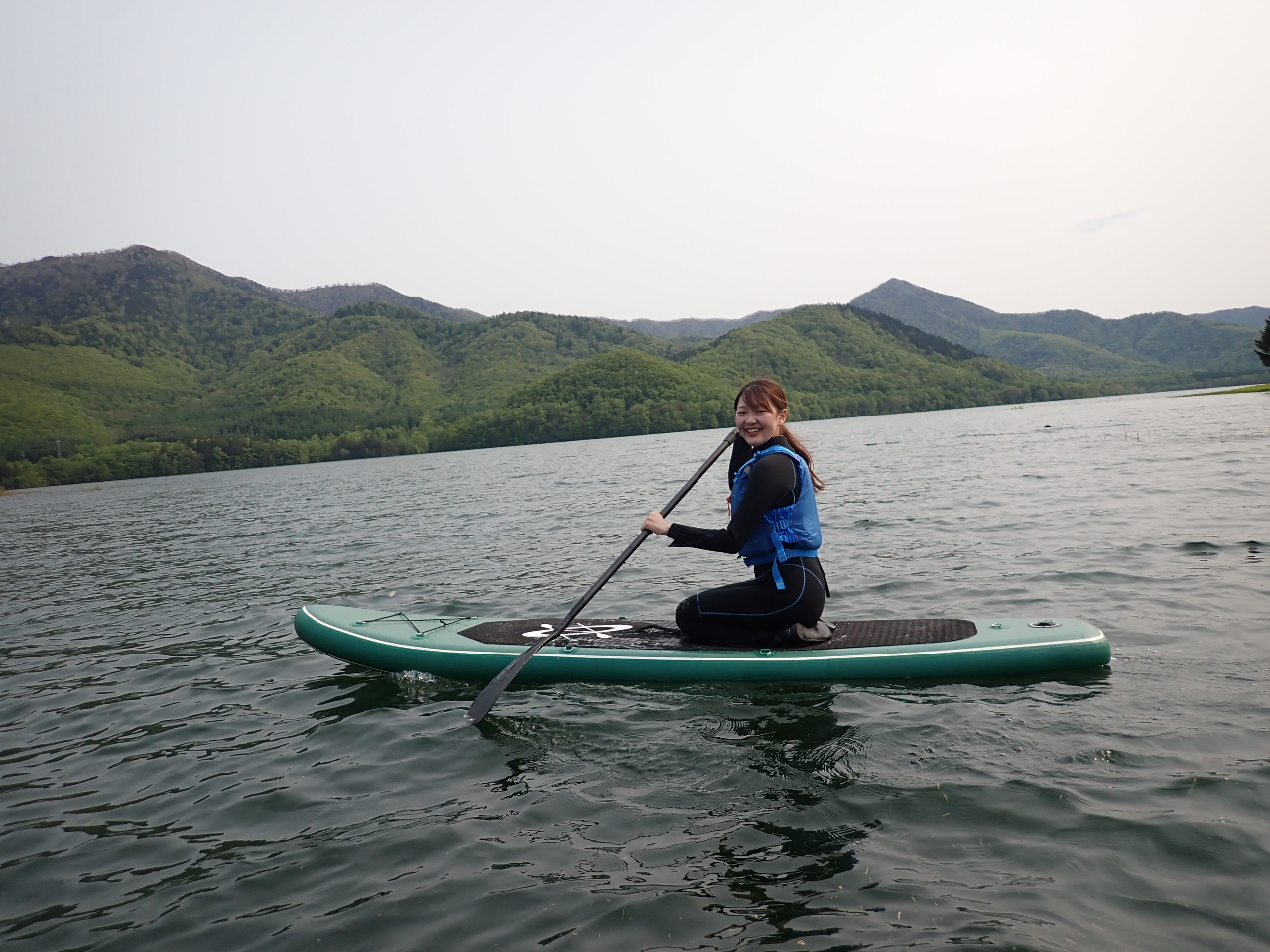 大自然に囲まれた静かで美しいかなやま湖でSUP体験ができます。