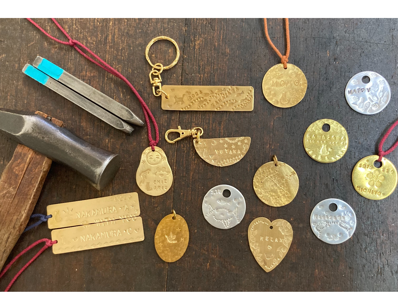 真鍮プレートに金槌と刻印で模様を付けること楽しむワークショップです。