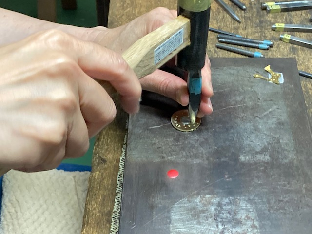 @刻印練習 スタッフと一緒に刻印を打つ練習をします。