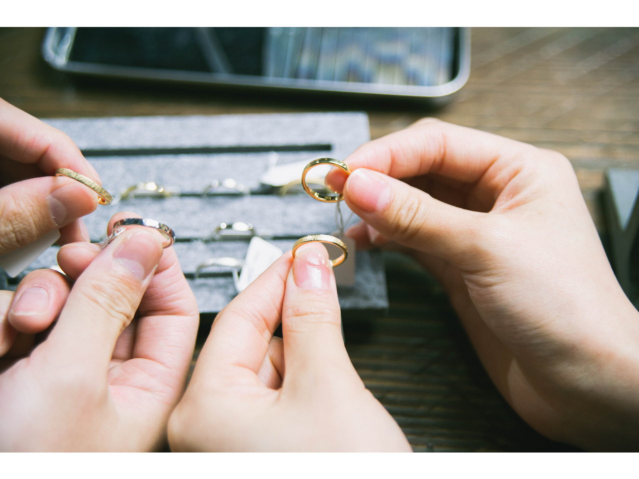 職人が一緒に製作しますので、必ず完成度の高いリングに仕上がります。細かい作業に自信がない場合や、難しいと感じた場合は、ご希望いただいただけ職人が作業をお手伝いします。