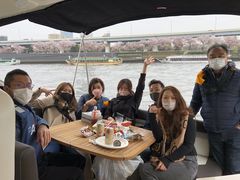 コロナの影響で、通常の花見を控えて、貸切クルーザーで海から花見のプランに変更した。サイトで調べてみたら、いろいろあったですが、高級そうでそれなりの値段で迷わず予約しました。3家族で子供合わせて10人、ちょうどいいサイズ、船が写真通りで非常にきれいでトイレとシャワーも付いていて、高級感が溢れて、子供が寝室のベッドで楽しく遊びました。2時間コースで桜名所をゆっくりクルージングして、ドリンクとお菓子も用意して、前方デッキのソファーに座ってクルージングを楽しめて、セレブな気分がいっぱいです!特に船長が優しくて、カッコイイ!船舶免許を取りたくなった。最高1日でした。ありがとうございました。またゴールデンウィークと夏に予約します。