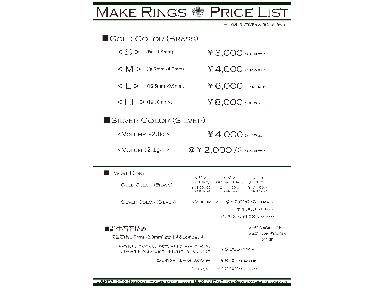 ※細身のリングはおおよそ4,400円、サイズ10号/幅3-4mm程度のリングでおおよそ7,000円前後になります。
